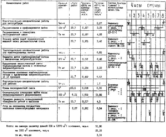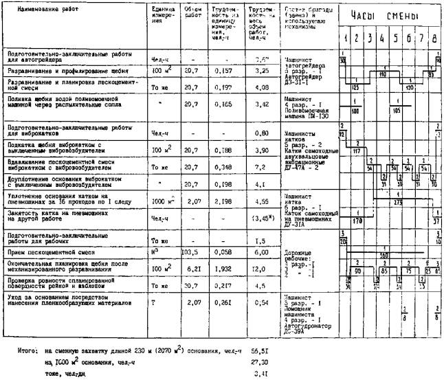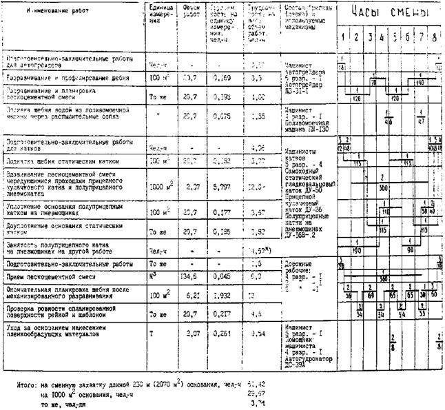 2.5. График выполнения работ на устройство за смену 230 м (2070 м2) щебеночного основания, обработанного в верхней части пескоцементной смесью по способу пропитки с использованием для уплотнения кулачкового катка