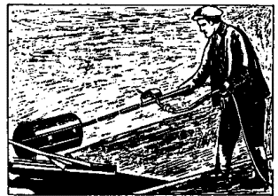 надевают рулон рубероида на ось укладчика, раскатывают конец рулона (длиной Потом кровельщики 3 разр. наливают мастику из ведра в бачок укладчика и вручную приклеивают примеренный конец рулона, а кровельщики 4 разр. наклеивают рубероидный ковер катками-раскатчиками (рис. 5, 6). Кровельщики 2 разр. доставляют мастику и рулонный материал к месту укладки на тележке. После окончания наклейки рулонного ковра звено переходит на работы по устройству бронирующего слоя.
