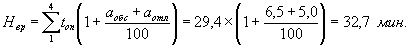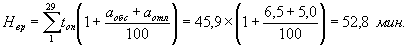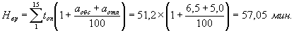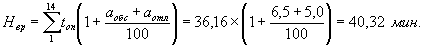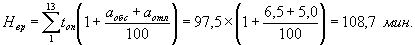 где N - суммарное оперативное время на уборку объектов различного назначения одного помещения, мин; аобс - время на обслуживание рабочего места, выраженное в %% к оперативному; аотл - время на отдых и личные потребности, выраженные в %% к оперативному. Суммарная норма времени на уборку различных служебных и культурно-бытовых помещений учреждения определяется по формуле: