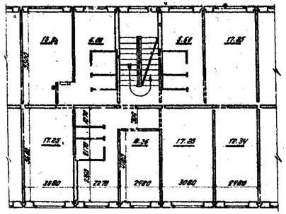 Рис. 1. План типовой секции (рядовой) крупнопанельного жилого дома серии 1-464 А