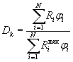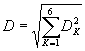 Количественной мерой интенсивности каждого из оцениваемых признаков в пределах функционального блока, является оценка в баллах. При этом, если признак является альтернативным (то есть если возможны только две оценки: да, нет) то производится оценка по 2-балльной системе, а если возможен ряд градаций признака, то, в простейшем случае, по 5-балльной. При этом максимальной выраженности признака, отвечающей наибольшей мере потенциальной опасности, должен соответствовать наибольший возможный балл - 4. В случае если минимальная выраженность признака фактически исключает (в пределах данного функционального блока) проявление наноматериалом опасных свойств, ей соответствует минимальный балл - 0. Если, даже при минимально возможной выраженности признака опасные свойства не исключаются или исключаются не полностью, то ей присваивается значение балла 2 или 1. Отдельно рассматривается вопрос об отсутствующих (неполных) данных. В случае если во всем доступном объеме источников отсутствуют сведения об оценке для наноматериала рассматриваемого признака, то данный признак для анализируемого объекта признается неопределенным. В этом случае ему присваивается величина балла, средняя между минимально и максимально возможной. Расчет "частной" опасности наноматериала по данному функциональному блоку свойств производится по формуле: где k - порядковый номер функционального блока, Dk - его "частная" опасность, i - порядковый номер признака, N - общее число признаков в функциональном блоке, Ri - оценка выраженности признака в баллах, Rmaxi - максимально возможная балльная оценка данного признака*, j(i) - значение взвешивающей функции для i-го признака в соответствии с его рангом, приведенным в ГОТ**. * - В рамках данной модели по умолчанию Rmaxi=4 ** - При одинаковом уровне значимости разных признаков в пределах одного функционального блока им может присваиваться одинаковый ранг По определению, максимально возможным значением "частной опасности" может быть Dk=1, в том случае, когда все признаки в пределах функционального блока оцениваются максимальным рангом. Минимальное значение Dk для каждого функционального блока приведено в ГОТ. Итоговая оценка опасности рассматривается как длина вектора в 6-мерном пространстве "частых" опасностей и рассчитывается по формуле Минимальное значение D, отвечающее, предположительно, полному отсутствию опасности, составляет, при расчете по формулам (3, 4) в соответствии с ГОТ составляет 0,441, а максимальное, отвечающее самой высокой опасности - 2,499. Классификация объекта (наноматериала) по признаку опасности для здоровья человека осуществляется в соответствии с данными, приведенными в таблице 2. Оценка результатов выявления потенциальной опасности наноматериалов