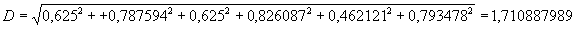 Частные опасности по блокам 1-6 принимают значения: D1=(3´2+2´2)/(4´2+4´2)=0,625 D2=(4´2+4´1+3´2+3´0,75+0´0,75+2´0,5+3´0,3125+4´1)/ /(4´(2+1+2+0,75+0,75+0,5+0,3125+1)=0,787594 D3=(2,5´2+2,5´0,75+2,5´1)/(4´(2+0,75+1))=0,625 D4=(4´1+2´2+4´0,75+4´2)/(4´(1+2+0,75+2))=0,826087 D5=(4´0,5+3´1+3´0,75+0´2+3´2+1´2)/(4´(0,5+1+0,75+2+2+2))=0,462121 D6=(3´2+4´2+2´1+3´0,75)/(4´(2+2+1+0,75))=0,793478 Значение опасности наноматериала составляет: