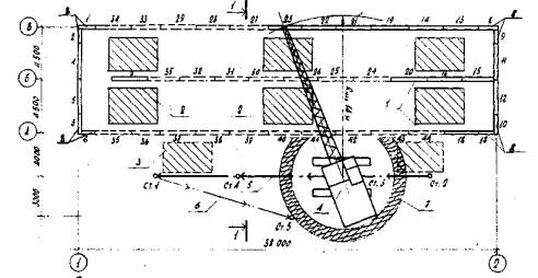 1. ОБЛАСТЬ ПРИМЕНЕНИЯ1.1. Технологическая карта разработана на устройство одной двухкорридорной секции аэротенка с низконапорной аэрацией; (размеры коридора 4,5×4,0×36,0 м) с полносборными стенами с применением тиоколовых герметиков. 1.2. В состав работ, рассматриваемых картой, входят: - устройство бетонной подготовки; - армирование днища; - бетонирование днища; - монтаж сборных железобетонных панелей стен; - заделка стыков панелей. 1.3. Работы следует вести в две смены. Герметизировать стыки следует при температуре не ниже 5°С предпочтительно в сухую погоду. При необходимости герметизировать стыки в дождливую погоду место работы защитить от попадания влаги. 1.4. При привязке технологической карты к конкретному объекту и условиям строительства принятый в карте порядок выполнения работ по устройству аэротенка, место расположения механизмов, объемы работ, калькуляцию трудовых затрат, средства механизации уточнить в зависимости от принятого для конкретного объекта проекта производства работ. 2. ОРГАНИЗАЦИЯ И ТЕХНОЛОГИЯ СТРОИТЕЛЬНОГО ПРОИЗВОДСТВА2.1. До начала работ по устройству аэротенка необходимо: - окончить производство земляных работ; - выполнить основание под аэротенки; - проложить временные автодороги; - доставить на объект монтажный кран, строительные машины, сварочные трансформаторы, инвентарь, инструмент и приспособления. Схема организации работ приведена на рис. 1. 2.2. Бетон на строительную площадку доставлять централизованно с помощью автобетоновозов или автосамосвалов, приспособленных для перевозки бетона. Арматурные сетки, каркасы, стеновые панели и другие материалы доставлять на объект, в зону действия монтажного крана, создавая не менее чем четырехсменный запас, который должен постоянно поддерживаться. Схема складирования конструкций приведена на рис. 2. 2.3. Бетонная подготовка выполняется полосами. Направление бетонирования указано на рис. 3. Бетон на площадку доставлять