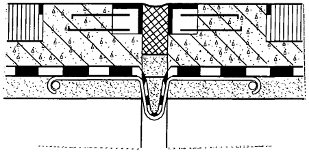 Рис. 3. Недопустимое разделение бетона омоноличивания слоем гидроизоляции е) Для обеспечения долговременной бездефектной работы конструкций деформационных швов и примыкающих к ним участков дорожной одежды перед деформационными швами с верховой по продольному уклону стороны пролетного строения, а при расположении пролетного строения на горизонтальной площадке или с продольным уклоном до 5% - с обеих сторон, необходимо устройство дренажных систем для вывода воды, проникшей на уровень гидроизоляции. Нумерация пунктов приводится в соответствии с источником и) При интенсивности движения по полосе свыше 5 тыс. автомобилей (грузовых и легковых) в сутки в примыкании покрытия к деформационному шву (к металлу или бетону) следует устраивать переходной участок шириной 30¸50 см по всей длине шва, в котором верхний слой покрытия выполняют из более прочного материала: ЩМА, полимерасфальтобетона или мастично-щебеночной смеси. Область рационального применения этих материалов приведена в разделе 9. Раздел 6. Конструкции одежды ездового полотнаа) На пролетных строениях с железобетонной плитой проезжей части аI) Применяемые конструкции одежд в значительной мере определяют конструктивное решение узла сопряжения их с конструкциями деформационных швов. Применяемые конструкции одежды ездового полотна приведены на рис. 4.