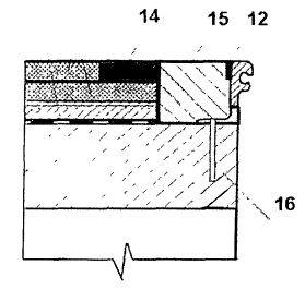 Рис. 8. Сопряжение для случая крепления окаймления «химическими анкерами» 12 - мастичное заполнение, 14 - переходный участок, 15 - бетонный прилив 16 - анкер на клею г) Схема № 3 - примыкание слоев одежды к стальному окаймлению в случаях, когда высота окаймления позволяет завести гидроизоляцию и покрытие над ней на горизонтальную поверхность окаймления. Схема предусматривает устройство двух слоев покрытия над гидроизоляцией общей толщиной 110 мм, из которых нижний слой толщиной 40 мм. При интенсивности движения свыше 5 тыс. авт./сут по одной полосе устраивают переходной участок на ширине 0,25-0,5 м из более прочного материала с характеристиками по таблице 28. Схема № 3 справедлива для пролетных строений с железобетонной монолитной плитой, с железобетонной плитой и выравнивающим слоем по ней (без выравнивающего слоя, рис. 9,а), а также с ортотропной плитой (рис. 9,б).