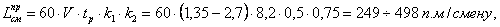 k2 - коэффициент перехода от эксплуатационной к среднечасовой производительности.