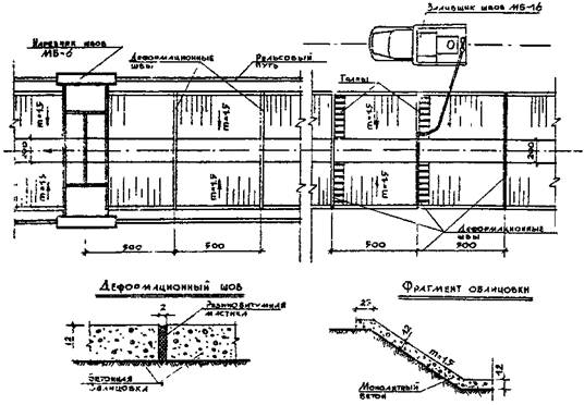 Состав строительных операций 1. Перекладка рельсового пути. 2. Профилирование сечения канала. 3. Укладка бетонной смеси. 4. Нарезка швов и нанесение пленкообразующего состава. 5. Выдерживание бетона в течение 5 дней. 6. Герметизация швов. |