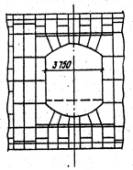 Рис. 5. Рама проема из тюбингов МРП. 2.6.2. При проходке тоннеля проемы временно заполняют нормальными тюбингами и клинчатыми вкладышами под сводами перемычки: B1 - 1 шт., В2 - 2 шт., В3 - 2 шт. под каждую перемычку. 2.6.3. Временное заполнение проема разбирают при разработке проходов между средним и путевым тоннелями. 2.6.4. Монтаж обделки производят тюбингоукладчиком ТУ-4ГП после разработки забоя на цикл заходки и передвижки укладчика. 2.7. Первичное нагнетание цементно-песчаного раствора (1:3) за обделку тоннеля производят во второе кольцо, считая от забоя. Нагнетание выполняют с помощью растворонагнетателя PH-1, установленного на площадке технологической тележки, расположенной за тюбингоукладчиком. 2.8. Работы по сооружению среднего тоннеля горным способом с помощью тюбингоукладчика ТУ-4ГП должны выполняться в строгом соответствии со СНиП III-44-77 "Правила производства и приемки работ, глава 44" и "Тоннели железнодорожные, автодорожные и гидротехнические. Метрополитены". M., Стройиздат, 1977, "Правилами техники безопасности и производственной санитарии при строительстве метрополитенов и тоннелей". М., Оргтрансстрой, 1975, СНиП III-4-80 "Техника безопасности в строительстве" и Типовыми инструкциями по охране труда для машиниста укладчика сборной обделки тоннелей, по охране труда для проходчиков (1974) и по охране труда нагнетальщиков (1972). 2.9. Операционный контроль качества работ осуществляет начальник смены в соответствии с требованиями СНиП III-44-77 и КОКК настоящей технологической карты (раздел 5). 2.10. На рис. 2 приведена схема организации работ по проходке станционного тоннеля. 2.11. Работы по сооружению среднего тоннеля станции производят круглосуточно в 4 смены, в рабочие дни недели с продолжительностью 6 ч. 2.11.1. Сооружение тоннеля ведет сквозная комплексная бригада проходчиков по подрядному договору, состоящая из четырех звеньев. Состав звена: Проходчики: 6 разр. - 1 5 разр. - 2 4 разр. - 3 Нагнетальщик 3 разр. - 1 2.11.2. Обязанности машиниста блокоукладчика и породопогрузочной машины выполняет по совместительству проходчик 5 разр., получивший права и удостоверение на управление машинами. 2.11.3. Проходчики (6 разр. - 1, 5.разр. - 2 и 4 разр. - 1 ) выполняют обуривание по паспорту взрывных работ (рис. 3). Проходчики (6 разр. - 1, 5 разр. - 2, и 4 разр. - 2) ведут разработку забоя до проектного контура, проходчики (4 разр. - 1 и 3 разр. - 1) откатывают груженые вагоны с грунтом и подкатывают порожние под погрузку. Проходчик 5 разр. работает на породопогрузочной машине. 2.11.4. После оборки грунта в кровле забоя выдвигают с тюбингоукладчика предохранительный козырек. 2.11.5. Установку временного крепления лба забоя (навешивание сеток) выполняют проходчики (5 разр. - 2, и 4 разр. - 2) после окончания обуривания забоя на следующую заходку. Проходчик 3 разр. после освобождения на разработке грунта ведет первичное нагнетание за обделку. Пять проходчиков (6, 5 и 4 разр.) после окончания разработки грунта выполняют передвижку тюбингоукладчика к забою. Проходчик-машинист находится у пульта управления. 2.11.6. Два проходчика 4 разр. в период передвижки укладчика заняты наращиванием откаточных путей. 2.12. Монтаж обделки ведут 7 проходчиков с подкаткой тюбинговозов с чугунными тюбингами, проходчики (6 и 5 разрядов - 2) заняты на строповке тюбингов и установке их на место. Два проходчика (4 разр.) откатывают порожние тюбинговозки. П