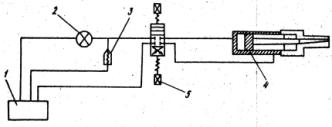 Рис. 9. Схема гидроклина и привода: 2.7.1. Перед началом разработки забоя тоннеля обнаженные кольца обделки перегонного тоннеля покрывают стальными листами в порядке защиты обделки. 2.7.2. Гидроклин ГК-2050 (разработанный ЦНИИСом и СКТБ) состоит из гидроцилиндра двойного действия, клина и разжимных подпружиненных щек, соединенных с корпусом. Рабочая жидкость (масло) под давлением подается от установки. Управление осуществляется через гидрораспределитель с электромагнитным приводом. 2.7.3. Разрыхленный грунт по металлическим листам сбрасывают на откаточный горизонт в зону работы погрузочной машины. Груженные грунтом вагонетки по одной подкатывают к переподъемнику и по тому же пути доставляют порожние вагонетки. 2.7.4. Параллельно с разработкой грунта забоя производят временное крепление кровли и лба забоя с установкой марчеван и затяжек с раскреплением. 2.8. После разработки забоя на цикл (одно кольцо) передвигают к забою дуговой укладчик тюбингов (ТУ-8) (рис. 10), смонтированный на колесном ходу, передвигающийся гидроприводом по металлическим листам, заанкеренным в бетонные опоры свода. После проверки правильности установки блокоукладчик закрепляют. 2.8.1. Доставленные на монтаж тюбинги электрической лебедкой подтягивают по роликам дугоукладчика к месту установки и гидродомкратом размещают в кольце.