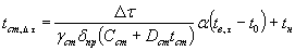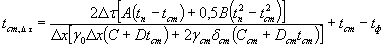 9. Температура на стальной пластине - tcm,∆τ через расчетный интервал времени - ∆τ, вычисляется по формулам: