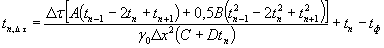 tcm,∆τ - температура стержня через расчетный интервал времени - ∆τ, °К;