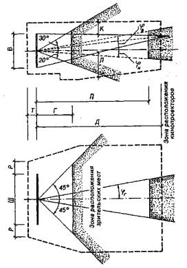 Параметры зрительного зала при установке кинопроекционного оборудования показаны на чертеже, где:
