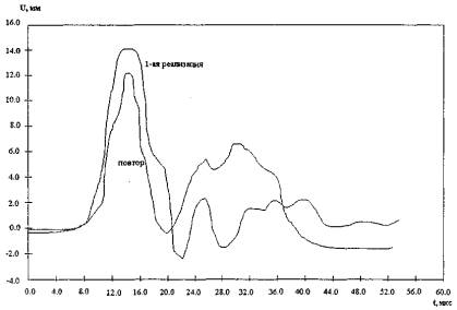 Рис. 1. График зависимости деформации оголовка свай от времени t при ударном воздействии