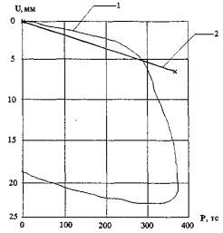 Рис. 3. Определение несущей способности сваи: 7.4. Расчет несущей способности свай по грунту, проводимый в комплексе проектно-изыскательских работ, рекомендуется выполнять апробированным в ОАО ЦНИИС методом конечных элементов (МКЭ) с использованием программы к ЭВМ COSMOS/M (USA), который позволяет вычислять составляющие несущей способности свай по их боковым поверхностям. Допускается также применение других методов расчета, обеспечивающих достаточную сходимость получаемых результатов с результатами испытаний свай по методу ЭЛДИ, согласно п. 1.5. 7.5. Результаты испытаний свай по методу ЭЛДИ должны быть представлены в виде технических отчетов и Заключений, а также по формам ГОСТ 5686 в соответствии с требованиями заказчика, генерального подрядчика и проектной организации объекта. 7.6. К техническим материалам испытания свай по методу ЭЛДИ в обязательном порядке должны быть приложены акты и заключения ОАО ЦНИИС о результатах контроля каждой испытанной сваи на сплошность и неоднородность материала (бетона). 8. ТЕХНИКА БЕЗОПАСНОСТИ ПРИ ПРОИЗВОДСТВЕ РАБОТ8.1. Производство работ по настоящим Методическим рекомендациям следует вести с соблюдением требований следующих нормативных документов: СНиП 12-03-2001 «Безопасность труда в строительстве. Общие требования»; СНиП III-4-93 «Техника безопасности в строительстве»; Правила устройства и безопасной эксплуатации грузоподъемных кранов машин. МПС РФ, Приказ № РБ ЦРБ-278 от 14.01.1994; Правила производства земляных и строительных работ, прокладки и переустройства инженерных сетей и коммуникаций в г. Москве. Правительство Москвы. Постановление № 603 от 08.08.2000 г. 8.2. К работам, определенными настоящим Методическими рекомендациями, допускаются лица, сдавшие техминимум по производству работ и технике безопасности. До начала работ со всеми рабочими и ИТР, привлекаемыми к испытаниям свай, должен быть проведен конкретный инструктаж по порядку выполнения и безопасному ведению работ с записью под расписку в Журнале регистрации инструктажа на рабочем месте. 8.3. К началу производства работ по испытаниям свай все механизмы, оборудование, стропы и инвентарь должны быть освидетельствованы производителем работ и приняты им по Акту. В процессе производства работ за их состоянием и исправностью следует вести постоянный контроль. Использование кранов, не имеющих ограничителей грузоподъемности, запрещается. Стальные канаты, такелажные и грузозахватные приспособления (стропы, траверсы и т.п.) должны соответствовать требованиям ГОСТ 12.3.010. 8.4. Подключение электрических инструментов и оборудования, включая насосные станции к гидравлическим домкратам для подачи статической нагрузки на сваи, должно выполняться только аттестованным электриком. 8.5. Гидравлические шланги домкратов для подачи статической нагрузки на сваи должны иметь паспорта о ежемесячной проверке на давления, превышающие рабочие не менее чем на 5 ати. Шланги, в которых обнаружены самые малые повреждения, подлежат немедленной замене. 8.6. Эксплуатацию, перевозку, монтаж-демонтаж и испытания кранов и комплекса оборудования для испытания свай следует выполнять в соответствии с требованиями инструкций по их использованию под непосредственным руководством аттестованного механика. Перед началом работы с краном и другой техникой необходимо убедиться в от