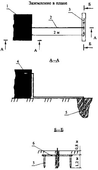 заземлитель 3, который на расстоянии около Вводная коробка 4 устанавливается снаружи над входной дверью здания (см. сечение