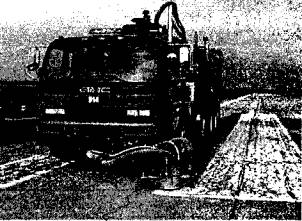 Удаление линий дорожной разметки машинами Stripe Hog (США) В настоящее время демаркирование линий дорожной разметки производится двумя основными способами: фрезами из твердого сплава, установленными на машинах, управляемыми вручную и струёй воды, подаваемой оборудованием высокого давления, установленного на машинах семейства Stripe Hog корпорации Waterblasting Technologies (США). Корпорация Waterblasting Technologies производит под торговой маркой Stripe Hog самые совершенные машины для удаления всех видов дорожной разметки струёй воды под высоким давлением. Удаление всех видов дорожной разметки с поверхности асфальта и бетона машинами Stripe Hog производится чисто и экономично с одновременной уборкой мусора вакуумными насосами в автоматическом цикле. Дорожные разметки из термопласта, эпоксидной и водяной краски удаляют с любых поверхностей машинами Stripe Hog под давлением 2757 бар. Машины Stripe Hog удаляют полосу дорожной разметки шириной от 10 до 70 см. Корпорация Waterblasting Technologies в настоящее время выпускает следующую гамму демаркировочных машин: Stripe Hog 4000; Stripe Hog 5000; Stripe Hog 6000 и Stripe Hog 8000. Stripe Hog 4000 - у этой машины (рис.1) демаркировочная насадка закреплена на мини-тракторе и оснащена системой подачи воды под давлением 2757 бар при расходе воды 22,71 литров в минуту. Мини-трактор может работать на относительно большом расстоянии от грузовика, используя шланги, соединяющие насос и пылесос. Подвижная стрела крана позволяет создать удобный радиус для работы вокруг машины и защищает шланги от соприкосновения с землей. Мини-трактор применяется в основном для удаления линий дорожной разметки на перекрестках, остановках, местах парковки и других труднодоступных местах. Мощная система вакуумной очистки обеспечивает чистоту дороги. Образовавшийся мусор быстро просушивается и отправляется в бункер для мусора емкостью 6,06 м3. Цистерна для воды имеет емкость 2,8 м3. Одной заправки цистерны хватает от 4 до 8 часов работы по демаркировке, а бункер для сбора мусора обеспечивает работу машин на 4 дня. Рис.1. Демаркировочная машина Stripe Hog 4000 с мини-трактором Stripe Hog 5000 - эта модель включает в себя все компоненты Stripe Hog 4000, кроме мини-трактора. Насадка Hog Head крепится на передний бампер грузовика (рис. 2) при помощи стрелового крана Hog Arms. Этот уникальный механизм поддерживает и двигает насадку Хог Хед в любую сторону в радиусе 120 см. Стреловой кран может крепиться либо со стороны водителя, либо пассажира или между ними. Если демаркировка производится со стороны пассажира, то возможна установка видеосистемы наблюдения или второй системы управления. Stripe Hog 5000 особенно эффективен при удалении прерывистых линий разметки, так как водитель может увеличить скорость на участке свободным от краски. Рис.2. Машина Stripe Hog с насадкой на переднем бампере грузовика Удобное расположение панели управления позволяет управлять машиной, как со стороны водителя, так и со стороны пассажира. Stripe Hog 6000 - эта модель сочетает все функции Stripe Hog 4000 и Stripe Hog 5000, дополнением является мини-трактор, который располагается за кабиной, легко погружается и разгружается по откидной платформе. Эта весьма удачный вариант компоновки машины, позволяющий удаление, как длинных полос, так и других видов разметки, для удаления которых идеально подходит мини-трактор. Stripe Hog 8000 - эта модель в два раза мощнее и производительней других моделей машин. Напр