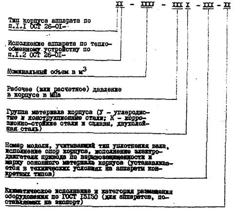 01.01.90 Несоблюдение стандарта преследуется по закону Настоящий стандарт распространяется на вертикальные стальные аппараты номинальным объемом от 0,01 до 100 м3 с механическими перемешивающими устройствами (далее - аппараты), гуммированные аппараты объемом от 1 до 16 м3 в части изготовления металлических конструкций, предназначенные дня проведения различных технологических процессов в жидких средах плотностью до 2000 кг/м3 и динамической вязкостью не более 200 Па.с, а также в неньютоновских жидкостях, которые по своему реологическому поведению могут быть отнесены к жидкостям псевдопластического типа, имеющим эквивалентную динамическую вязкость не более 200 Па.с, при рабочей температуре от минус 40 до плюс 350 °С, при избыточном давлении в аппарате до 6,3 МПа и под вакуумом с остаточным давлением не ниже 670 Па. Стандарт не распространяется на аппараты с эмалевым покрытием и аппараты, изготовленные из чугуна и неметаллических материалов, а также обогреваемые топочными газами или открытым пламенем. Для аппаратов с полимерным покрытием, футерованных, а также аппаратов, изготовляемых из цветных металлов и сплавов, требования стандарта являются рекомендуемыми. Стандарт устанавливает требования к аппаратам, изготовляемым для нужд народного хозяйства и экспорта. Стандарт полностью соответствует СТ СЭВ 2421. 1. ОСНОВНЫЕ ПАРАМЕТРЫ И РАЗМЕРЫ1.1. Аппараты изготовляют типов: 0 - с эллиптическим днищем и эллиптической отъемной крышкой; 1 - с неразъемным корпусом и эллиптическими днищами и крышкой; 2 - с коническим днищем, углом при вершине корпуса 90° и эллиптической отъемной крышкой; 3 - с неразъемным корпусом, коническим днищем, углом при вершине конуса 90° и эллиптической крышкой; 4 - с эллиптическим днищем и плоской отъемной крышкой; 5 - с неразъемным корпусом, эллиптическим днищем и плоской крышкой; 6 - с коническим днищем, углом при вершине конуса 120° и плоской отъемной крышкой; 7 - с неразъемным корпусом, коническим днищем, углом при вершине конуса 120° и плоской крышкой; 8 - с плоским днищем и плоской отъемной крышкой; 9 - с неразъемным корпусом, плоскими днищем и крышкой. Примечание. В аппаратах типов 4-9 внутренним диаметром более 1400 мм допускается применять сферические крышки вместо плоских. 1.2. Аппараты в зависимости от наличия и типа теплообменных устройств изготавливают следующих исполнений: 0 - без теплообменного устройства; 1 - с гладкой рубашкой; 2 - с рубашкой из полутруб; 3 - с рубашкой с вмятинами; 4 - с электронагревателем. Примечание. В аппаратах всех типов допускается внутренние теплообменные устройства-змеевики. 1.3. Номинальный объем и размеры корпуса аппаратов - по ГОСТ 9931. 1.4. Аппараты, должны изготавливаться с мешалками, расположенными вертикально по оси аппарата. Допускается применять на одном валу две и более мешалки. 1.5. Типы мешалок - по ОСТ 26-01-1245. 1.6. Условное обозначение аппаратов устанавливается в соответствии с приложением. 2. ТЕХНИЧЕСКИЕ ТРЕБОВАНИЯ2.1. Характеристики2.1.1. Показатели качества должны соответствовать требованиям OCT 26-01-150 и инструкторской документации на конкретную продукцию. 2.1.2. Мощность, потребляемая из сети в рабочих условиях, не должна быть более номинальной мощности установленного привода. 2.1.3. При непрерывной работе перемешивающего устройства аппарата в течение 1 ч температура наружных поверхностей корпусов подшипник