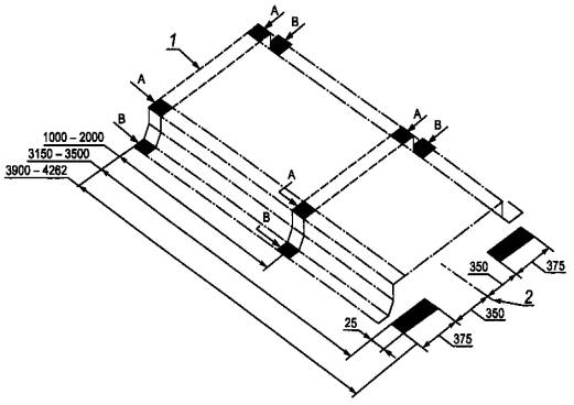 Все опорные площадки тоннеля состоят из двух частей: верхней части А и нижней части В. Эти спаренные части А и В следует рассматривать как единую опорную площадку, состоящую из двух компонентов А + В, имеющую площадь не более 1250 мм2.