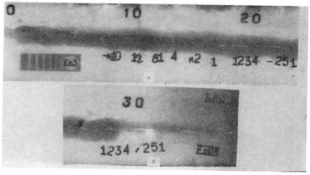 Рис. 3. Примеры маркировки при просвечивании на рулонную пленку: а - без использования мерительного пояса; б - с использованием мерительного пояса 3.3. На контролируемом соединении закрепляют мерительный пояс, устанавливая его по границе сварного шва, а уже над ним по границе этого пояса закрепляют рулонную пленку или пояс с кассетами. С другой от мерительного пояса стороны шва под пленку или пояс с кассетами устанавливают подготовленные наборы для маркировки. При отсутствии мерительных поясов наборы для маркировки устанавливают с любой стороны шва. Во всех случаях следует обращать особое внимание на закрепление рулонной пленки или пояса с кассетами таким образом, чтобы изображение сварного шва располагалось вдоль средней части снимка симметрично относительно его краев. 4. ПРОВЕДЕНИЕ РАДИОГРАФИЧЕСКОГО КОНТРОЛЯ И РАСШИФРОВКА ЕГО РЕЗУЛЬТАТОВ4.1. Просвечивание сварных соединений и расшифровку результатов контроля производят в соответствии с требованиями ОСТ 102-51-79 «Контроль неразрушающий. Сварные соединения трубопроводов. Радиографический метод», а также действующими нормативными документами. 4.2. Оформление заключений по радиографическому контролю и заполнение журнала регистрации результатов контроля сварных соединений физическими методами производят в соответствии с требованиями СНиП III-42-80 «Строительные нормы и правила. Правила производства и приемки работ. Магистральные трубопроводы» или другими действующими нормативными документами. В прил. 1 дана форма заключения по проверке качества сварного стыка физическими методами контроля. В прил. 2 дана форма журнала регистрации результатов контроля сварных соединений физическими методами контроля. Приложение 1