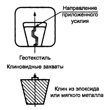 е) Альтернативная конструкция захватов, пригодная для испытания геотекстиля из расплава полимера