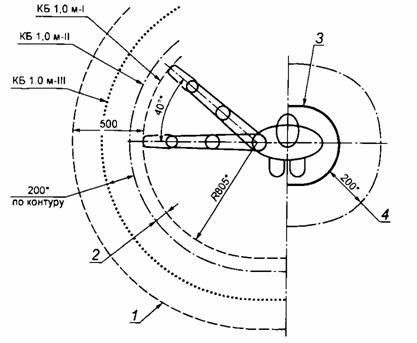 * Размеры для справок 1 - дополнительный контур для деревьев, веток и других смещаемых препятствий; 2 - дополнительный зазор; 3 – возможный защитный ограничитель; 4 - дополнительный зазор КБ 1,0 м-I - обязательный; КБ 1,0 м-II - нормальный; КБ 1,0 м-III - максимальный