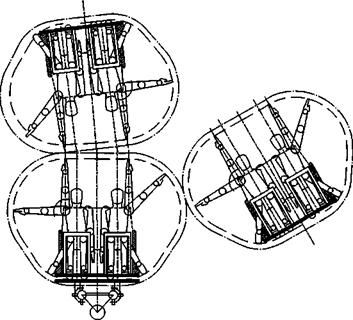 г) С периодически изменяемым наклоном оси вращения, реализующим циклоидальное движение Рисунок 12, лист 2 5.9.1.1 Системы ограничения доступа в опасные зоны и прохода для входа/выхода Если карусель, вращающаяся в горизонтальной плоскости, имеет хотя бы одну дополнительную ось вращения, то она должна быть ограждена по периметру согласно требованиям ОД-К3. Ограждения, соответствующие требованиям ОД-К3, должны быть на всех аналогичных аттракционах. Промежуточная зона, специально предназначенная для посетителей, ожидающих посадки, должна быть отделена от опасной зоны согласно требованиям ОД-К1. Проемы для входа/выхода посетителей при наличии промежуточной зоны выполняют в соответствии с ОД-Л1, при отсутствии такой зоны - по ОД-Л2. Если платформа аттракциона имеет круглую форму без выступающих частей и совершает только вращательное движение вокруг вертикальной оси с частотой вращения, не превышающей 8 об/мин (линейной скорости на краю платформы - не более 3 м/с), то ограждение не требуется. В случае превышения этого значения устанавливают ограждение, соответствующее требованиям ОД-К1. Если круглая вращающаяся платформа аттракциона имеет выступающие части или оснащена закрытыми пассажирскими модулями, а ее скорость не выходит за пределы, указанные выше, то необходимо ограждение в соответствии с требованиями ОД-К1. Если к вращению вокруг вертикальной оси добавляется медленное перемещение по вертикали параллельно оси вращения со скоростью, не превышающей 0,5 м/с, требования к ограждениям устанавливают по ОД-К1. На цепочных каруселях и подобных аттракционах с периодическим плавным подъемом отдельных сидений расстояние по вертикали от поверхности площадки, доступной публике, до нижней части движущегося сиденья в любой момент движения должно быть не менее 2,7 м. Границы зоны, где эта высота менее 2,7 м, ограждают согласно требованиям ОД-К1. Если высота подъема сидений менее 2,7 м, следует предусмотреть огражденную зону для посетителей согласно требованиям ОД-К3. Расстояние от этой зоны до наружного края сидений должно быть не менее 0,5 м по горизонтали. Входы и выходы должны соответствовать требованиям ОД-Л 1. Горизонтальное расстояние от наружной границы, внутри которой движутся подвешенные (качающиеся) кресла или гондолы, до неподвижных объектов должно быть не менее 0,5 м. 5.9.1.2 Пассажирские модули каруселей Посадочные места детских каруселей должны быть установлены на сплошной вращающейся платформе, если только для пассажиров не предусмотрены устройства фиксации и защита для ног. Двери должны быть снабжены замками, отпирающимися только снаружи. Входные двери на аттракционах вида «вращающихся барабанов» должны полностью изолировать пространство внутри и открываться только внутрь; замок должен отпираться только снаружи. Система подвески пассажирских модулей на стальных проволочных канатах или на плоскозвенных цепях должна быть такой, чтобы в случае отказа одного элемента не создавать опасной ситуации. 5.9.1.3 Устройства фиксации каруселей Устройства фиксации для этой категории аттракционов при частоте вращения более 8 об/мин и линейной скорости v, превышающей 3 м/с, должны соответствовать, как минимум, следующим требованиям: УФ-А1 - коллективное; УФ-В2 - с индивидуально регулируемым фиксирующим положением; УФ-Г2 - отпираемое вручную опер