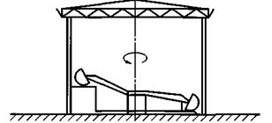 в) Вращение пассажирского модуля вокруг горизонтальной оси (без механического привода) Рисунок 13 - Вращение пассажирского модуля 5.9.2.1 Системы ограничения доступа в опасные зоны и проходы для входа/выхода Общие положения Системы ограждения опасных для посетителей зон в общем случае должны соответствовать требованиям ОД-К3. Проходы входа/выхода должны соответствовать требованиям ОД-Л2 и быть физически закрытыми (например, запертой калиткой) во время работы аттракциона. Системы ограждения опасных зон для качелей, раскачиваемых самими посетителями, должны соответствовать требованиям ОД-К3, при этом должны быть выполнены следующие условия: - выдержано расстояние до пассажирского модуля в любой точке траектории движения согласно требованиям 5.8.6.1, внутри огражденной зоны должно быть достаточно места для оператора; - ближайшие параллельные качели должны быть отделены дополнительным ограждением; - выполнены проходы для входа/выхода по требованиям ОД-Л2; - закрыт доступ посетителей к качелям во время сеанса. 5.9.2.2 Пассажирские модули качелей Пассажирские модули качелей, если это необходимо, должны иметь поручни на высоте 1,1 м от пола. Если расстояние по вертикали между верхним краем боковой стенки и поручнем более 0,4 м, то следует установить дополнительные промежуточные поручни. На качелях для детей ростом до 120 см эти размеры составляют 0,7 и 0,25 м соответственно. Если пассажирские модули колеса обозрения не полностью закрыты, то должны быть приняты меры, исключающие контакт пассажиров, частей их тел (особенно, длинных волос) и одежды с движущимися относительно пассажиров частями аттракциона. Ограждения входных проходов к полуоткрытым кабинам должны быть высотой не менее 1,1 м, если высота подъема более 12 м. Для колес обозрения для детей до восьми лет при высоте подъема менее 6 м высота ограждения входных проходов полуоткрытых кабин должна быть не менее 0,7 м. 5.9.2.3 Устройства фиксации колес обозрения и качелей В пассажирских модулях аттракционов, приводимых в движение самими пассажирами, должны быть предусмотрены ремни безопасности или аналогичные средства, если во время движения пассажиры переворачиваются вниз головой. Пассажирские модули, приводимые в движение внешним источником энергии, на которых во время катания пассажиры переворачиваются вниз головой, а ускорение, направленное от головы к ногам, может быть менее 0,2 g, должны быть снабжены дублирующим устройством фиксации согласно 5.8.7.3. 5.9.2.4 Тормоза качелей Качели должны быть оборудованы тормозами, которые плавно останавливают пассажирские модули и не блокируют их. Если оператор может остановить качели вручную, то вышеупомянутые тормоза не требуются. 5.9.2.5 Качели исключительно для детей младше 10 лет Расстояние между полом пассажирского модуля и осью подвески качелей должно быть не более 3 м, подъем детей выше горизонтальной линии, проведенной через ось вращения, должен быть исключен. 5.9.3 Катальные горы, темные аттракционы, железные дороги и другие аттракционы с пассажирскими модулями, перемещающимися по направляющим (рельсам, желобам и т.п.)5.9.3.1 Системы ограничения доступа в опасные зоны и проемы для входа и выхода Защитные ограждения опасных зон должны соответствовать требованиям ОД-К3. Проемы для входа и выхода должны соответствовать требованиям ОД-Л3, чтобы препятство