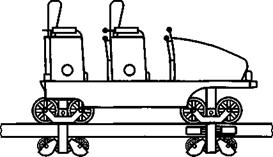 б) Аттракцион с желобом или каналом Рисунок 14 - Защита от схода пассажирских модулей с направляющих (выхода из желоба) 5.9.3.2 Пассажирские модули катальных гор Пассажирские модули должны быть спроектированы так, чтобы: - пассажиры как внутри, так и снаружи, не соприкасались с движущимися частями устройства для развлечения; - пассажиры, находящиеся в тележке, не могли получить травмы кистей или предплечий при соприкосновении с тележками, идущими впереди или позади; - шасси и верхняя часть тележек имели достаточное число степеней свободы и просвет для прохождения участков, имеющих кривизну, боковые наклоны, горки и ямы, с учетом допустимого износа. Бамперы устанавливают на равной высоте спереди и/или сзади в тех местах тележки, где она может контактировать с другими тележками или с какими-либо направляющими элементами тележки. Если при контакте возможно смещение бамперов относительно друг друга, например, из-за продольного или бокового покачивания, высота бамперов должна быть достаточной, чтобы обеспечить их перекрытие. Как минимум, один бампер на каждой тележке должен быть снабжен демпфирующим устройством для смягчения ударов, причем демпфирующая способность должна быть рассчитана для номинальной скорости. Демпферы можно не устанавливать, если тележки защищены от столкновения системой зон блокировки. 5.9.3.3 Системы фиксации На пассажирских модулях, если это необходимо, оборудуют устройства фиксации согласно 5.8.7. 5.9.3.4 Защита пассажирских модулей катальных гор от схода с рельсов, выхода из желоба Ведущие элементы пассажирских модулей должны обеспечивать постоянный контакт с рельсами (желобами) в любых условиях посредством соответствующих ходовых колес, боковых роликов, обратных роликов или эквивалентных систем. Конструкция ведущих элементов должна гарантировать, чтобы даже при потере одного колеса или ролика пассажирские модули не сошли с рельсов (из желоба) (см. рисунок 14). Поверхность качения ходовых колес, боковых и обратных роликов подвержена износу. Предельные нормы износа должны быть указаны в эксплуатационных документах. 5.9.3.5 Исключение боковых столкновений Боковые движения тележек и кабин должны быть ограничены, чтобы предотвратить столкновение с тележками и кабинами на соседних путях или с неподвижными объектами. Безопасные расстояния отсчитывают между ближайшими друг к другу точками тележек или кабин по линии их максимального сближения. Раскачивающиеся пассажирские модули должны быть оборудованы устройствами для блокирования боковых или продольных колебаний во время посадки и высадки пассажиров (см. также 5.4.4 и ГОСТ Р 52170). 5.9.3.6 Рельсовый путь 5.9.3.6.1 Траектория При проектировании катальных гор траекторию рельсового пути выбирают так, чтобы мгновенные теоретические изменения ускорения для пассажиров не превышали абсолютного значения 2 g. 5.9.3.6.2 Система зон блокировки Если на устройстве для развлечений одновременно могут двигаться несколько тележек или поездов, то должна быть установлена автоматическая безотказная (нормально замкнутая) система управления, не позволяющая им сталкиваться. Дополнительную информацию о системах управления см. в приложении Е. Система с зонной блокировкой должна быть основана на полном контроле трассы, разделенной на зоны блокировки, в каждой из которых может находиться од