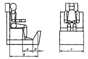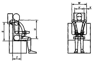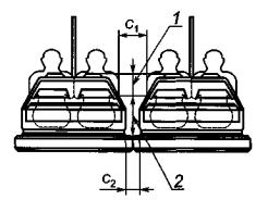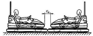 Рисунок 9 - Минимальный зазор для свободно перемещающихся пассажирских модулей 5.8.7 Уменьшение риска, связанного с использованием устройств фиксации5.8.7.1 Общие положения Конструкция устройств фиксации должна препятствовать выпадению или выбросу пассажира из пассажирского кресла и при этом должна предотвращать травмы частей тела, в том числе от воздействия вертикальных, боковых и продольных ускорений. Устройства фиксации должны иметь такую форму, чтобы чувствительные или хрупкие части тела пассажиров не подвергались чрезмерным воздействиям. Устройства фиксации с приводом не должны создавать дополнительную опасность для пассажиров. Движения таких устройств должны быть медленными, а максимальная действующая сила, измеренная в зоне контакта с телом пассажира, должна быть не более 0,15 кН (0,08 кН для детей). Конструкция замков устройства фиксации не должна допускать случайного отпирания. Замки устройств фиксации не должны открываться в случае неполадки или аварийной остановки аттракциона, если только это не предусмотрено для немедленной эвакуации пассажиров. 5.8.7.2 Устройства фиксации пассажиров Каждый пассажирский модуль оборудуют средствами, удерживающими пассажиров внутри модуля на своих местах, если это необходимо, учитывая характер движения модуля и высоту возможного падения пассажира. Выбранные устройства фиксации должны быть такими, чтобы позволяли избежать (или свести их к минимуму) следующих видов риска: - повреждение опорно-двигательного аппарата и позвоночника посетителя вследствие воздействия ускорений; - удар о части аттракциона или застревания между ними; - получение травмы при внезапном начале движения; - удар о части посадочного места или пассажирского модуля; - удар о других пассажиров при движении аттракциона; - выпадение или выброса из пассажирского модуля. Следует анализировать и возможные риски при намеренно опасном поведении пассажиров. В случае поломки или аварийной остановки, когда пассажиры удерживаются на своих местах устройствами фиксации, необходимо предусмотреть возможность подготовленному персоналу освободить пассажиров от устройств фиксации, обеспечив безопасную эвакуацию каждого пассажира. 5.8.7.3 Классификация устройств фиксации пассажиров Устройства фиксации (УФ) классифицируют следующим образом: - по числу пассажиров, фиксируемых одним устройством: УФ-А1 - коллективное устройство для двух или более пассажиров, УФ-А2 - индивидуальное устройство для каждого пассажира; - по возможности регулирования фиксирующего положения: УФ-Б1 -с нерегулируемым фиксирующим положением (дуги, штанги), УФ-Б2 - с индивидуально регулируемым фиксирующим положением, УФ-Б3 - с автоматическим контролем запирания; - по способу запирания: УФ-В1 - незапираемое, УФ-В2 - запираемое вручную пассажиром, УФ-В3 - запираемое вручную оператором, УФ-В4 - автоматически запирающееся при достижении фиксирующего положения, УФ-В5 - автоматически запирающееся и контролируемое при достижении фиксирующего положения; - по способу отпирания: УФ-Г1 - отпираемое вручную пассажиром, УФ-Г2 - отпираемое вручную оператором, УФ-Г3 - отпираемое оператором централизованно; - по типу сигнализации о срабатывании/несрабатывании запирающего устройства: УФ-Д1 -без сигнализации, УФ-Д2 - со световой и/или акустической сигнализацией, УФ-Д3 - со световой 