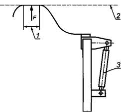 Рисунок 1 - Схема, поясняющая определение ударного коэффициента для противооткатного устройства 5.4.4 Прочие железные дороги с тележками на рельсах 5.4.4.1 Обычные железные дороги (детские железные дороги, дороги в «домах ужаса» и подобных аттракционах как с обычными, так и с подвесными пассажирскими модулями) Требования в отношении определения размеров и эксплуатационной безопасности обычных железных дорог должны максимально соответствовать 5.4.3. Если опоры и балки пути являются неотъемлемой частью конструкции крыши, то во время проектирования необходимо учитывать циклическое нагружение, вызванное вибрацией. 5.4.4.2 Катальные горы с подвесными пассажирскими модулями Должен быть выполнен расчет динамического поведения рельсовых дорог с подвесными тележками, имеющими одну (или более) степень свободы раскачивания или вращения. Для подвесных пассажирских модулей должны быть предусмотрены свободные пространства, соответствующие амплитуде свободного раскачивания, плюс дополнительный зазор в добавление к зазору между пассажирскими модулями на рельсах, согласно 5.8.6. Дополнительный зазор должен составлять не менее 20% расчетного угла размаха с минимальным значением 10°. При расчете угла размаха следует учитывать характер колебания. Ускорения, возникающие при колебаниях пассажирского модуля, необходимо учитывать при расчете тележки, рельсов и опор. Если предусмотрены амортизаторы боковых колебаний подвесных пассажирских модулей и если зазор недостаточен для недемпфированного колебания, то необходимо предусмотреть ограничения раскачивания. Это могут быть дополнительные амортизаторы специальной конструкции. В начале участков траектории, где движение подвесных пассажирских модулей регулируют (например, в местах пересадки пассажиров), должны быть предусмотрены соответствующие направляющие средства, которые способны стабилизировать пассажирские модули при, по крайней мере, двойном расчетном угле раскачивания и насколько возможно плавно в соответствии со скоростью движения направлять их. Фиксирование подвесных пассажирских модулей для пересадки пассажиров может быть заменено другими средствами, (например, подходящими амортизаторами) только при условии, что пассажиры не подвергаются опасности и не испытывают неудобств от использования других средств. 5.4.5 Трибуны Трибуны аттракционов подвергают обычной проверке предельных состояний согласно 5.1.4. Особое внимание необходимо уделять защите от опрокидывания, если над трибунами сооружена крыша или установлены флаги или транспаранты. 5.5 Проверка устойчивости элементов конструкций и аттракционов5.5.1 Расчет на устойчивость, проводимый с целью исключить или уменьшить риск достижения предельных состояний - потери устойчивости положения и потери устойчивости формы, - выполняют в соответствии с ГОСТ Р 52170, раздел 8. Должны быть выполнены расчеты для исключения опрокидывания, скольжения и приподнимания конструкций как видов потери устойчивости положения (если только отсутствие такой опасности не очевидно). 5.5.2 Потеря устойчивости формы как предельное состояние конструкций аттракционов особенно характерна для металлических конструкций. Основные положения расчетов на устойчивость формы приведены в [5] и ГОСТ Р 52170, раздел 8. 5.5.3 Наземное закрепление анкерами - согласно Г