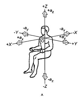 Исходная точка для расчета или измерения ускорения, воздействующего на пассажира, расположена на 60 см выше уровня сиденья.