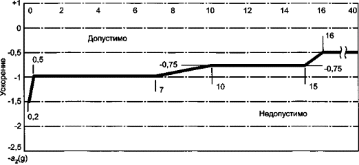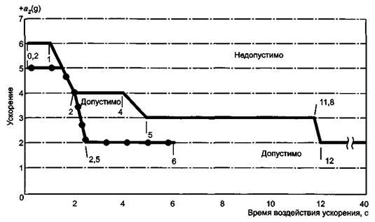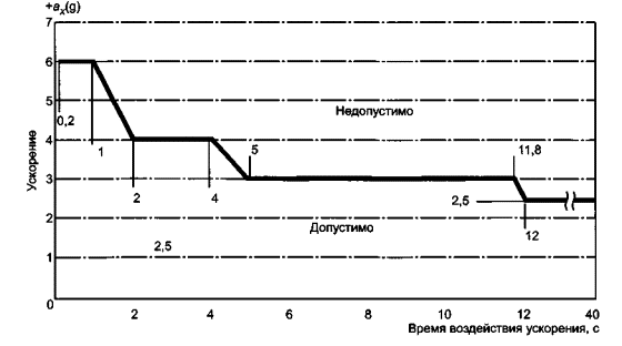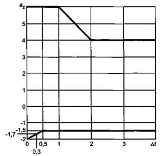 В связи с необходимостью соблюдать временной интервал 0,3 с допустимые крайние значения ускорений составляют az = -1,7 g и az = + 6,0 g.