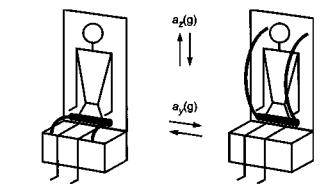 При воздействии значительных ускорений ±аy(g) (см. рисунок А.6) рекомендуется применять систему фиксации плеч и грудной клетки в дополнение к системе фиксации таза (см. рисунок А.7).