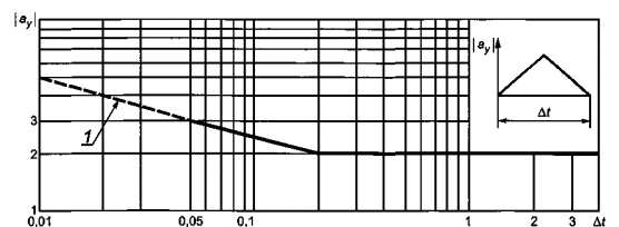 Допустимые значения ускорения во времени для воздействий в боковом направлении определяют в соответствии с графиком, представленным на рисунке Б.1.
