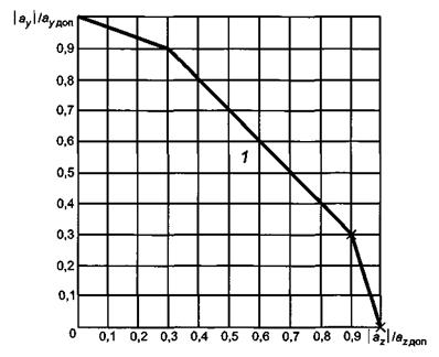 Допустимые значения ускорений ау и az, полученные в результате наложения ускорений, действующих в разных направлениях, представлены на рисунке Б.4.