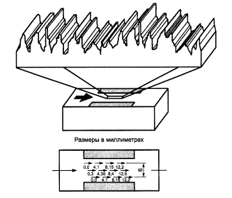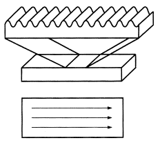 Рисунок 4 - Пример эталона шероховатости (тип D) и схема измерений 6 Определение метрологических характеристик6.1 Оценка остаточного профиля Остаточный профиль оценивают с помощью оптической пластины. Для калибровки прибора используют поверхности с параметрами шероховатости Ra, Rz или Rmax. Примечание - При этом устанавливают влияние прямолинейности независимой направляющей привода датчика, условий окружающей среды и шума прибора. 6.2 Погрешность вертикальной составляющей профиля Для определения погрешности вертикальной составляющей профиля используют эталон высоты неровностей, воспроизводящий высоту профиля. Примечание - Допускается использовать плоскопараллельные концевые меры длины. При использовании блоков из концевых мер необходимо учитывать неопределенность измерения разности их высот. 6.3 Погрешность горизонтальной составляющей профиля Для определения погрешности горизонтальной составляющей профиля используют эталон шага неровностей, воспроизводящий средний шаг неровностей профиля RSm. 7 Калибровка7.1 Калибровка системы координат профиля Для калибровки системы координат используют наклонную оптическую пластину, которая воспроизводит: - угол, определенный по методу наименьших квадратов; - полную высоту Pt исходного профиля, полученного относительно прямой линии, проведенной по методу наименьших квадратов. Эталон координат профиля воспроизводит полную высоту Pt исходного профиля, полученного после выделения номинальной формы по методу наименьших квадратов, и устанавливает систему координат. 7.2 Калибровка тракта Для калибровки всего тракта прибора используют эталон шероховатости, который воспроизводит: - среднеарифметическое отклонение профиля Ra; - максимальную высоту профиля Rmax. 7.3 Подготовка к калибровке прибора Перед калибровкой прибор должен быть опробован в соответствии с руководством по эксплуатации на него. Перед калибровкой прибора должны быть выполнены следующие процедуры: - оценен остаточный профиль; - выровнена плоскость эталона высоты неровностей относительно базовой поверхности. Отклонение от плоскостности всех эталонов должно быть в пределах 10% диапазона измерений» но не более 10 мкм в пределах длины оценки; - эталоны шероховатости должны иметь параметры шероховатости, сравнимые по диапазону с параметрами шероховатости поверхности, подлежащей измерению; - измерения следует проводить в середине измерительного диапазона датчика; - оценку неопределенности измерений по разделу 8 следует проводить по результатам многократных измерений, которые необходимы из-за неоднородности эталона, вариации, свойственной измерительной процедуре, и воспроизводимости результатов измерений непосредственно измерительным прибором; - условия калибровки прибора должны быть аналогичны условиям калибровки эталона; - процедура обработки результатов измерений (т.е. метод наименьших квадратов, минимальная зона и т.д.) должна быть аналогична процедуре обработки результатов измерений при калибровке эталона. 7.4 Оценка остаточного профиля Ощупывают оптическую пластину. Определяют остаточный профиль и вычисляют параметры поверхности Pt и Pq (среднеквадратическое отклонение ординат профиля). При калибровке прибора по эталону шероховатости соблюдают условия, требуемые для данной процедуры. Например, отсечка ш
