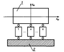 1 - машина; 2 - фундамент Рисунок 1 - Аналитическая модель машины, установленной на виброизоляторы