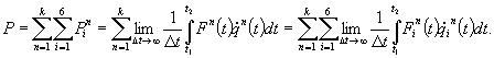 1 - виброизолятор Рисунок 2 - Система координат на входе и выходе виброизолятора и обозначения составляющих силы и скорости Плоскости систем координат машины и виброизоляторов zМxМ и xz; zМyМ и zy; хМуМ и ху являются параллельными, соответственно. Координатные оси zM и z; xM и х; ум и у также взаимопараллельны. 4.1.2 Колебательную мощность, излучаемую машиной в n-й виброизолятор (или через него в фундамент), определяют как среднее в бесконечном промежутке времени скалярного произведения векторов силы, действующей на n-й виброизолятор (или через виброизолятор на фундамент), и скорости вибрации на входе n-го виброизолятора в месте соединения с машиной (или на выходе в месте соединения n-го виброизолятора с фундаментом): где Δt = t2 - t1 - интервал времени, в течение которого выполняется усреднение. 4.1.3 Колебательная мощность, излучаемая в n-й виброизолятор (или через него в фундамент), равна сумме мощностей, излучаемых в виде шести составляющих вибрации входного (или выходного) сечения n-го виброизолятора: