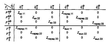 ψ, Θ, 3.7 составляющие ускорения вибрации 3.8 вектор силы F: Вектор возмущающей силы, содержащий шесть составляющих (три линейные силы и три момента силы), направленных вдоль координатных осей х, у и z соответственно. 3.9 линейные составляющие силы Fi: Линейные составляющие возмущающей силы (i = 1, 2, 3), направленные вдоль координатных осей х, у и z соответственно. 3.10 составляющие момента силы Мi(Fi): Составляющие момента возмущающей силы (i = 4, 5, 6), направленные вдоль координатных осей х, у и z соответственно. 3.11 вектор силы, приложенной к n-му виброизолятору Fn: Вектор возмущающей силы, приложенной к n-му виброизолятору (матрица - столбец), содержащий шесть составляющих (три линейные силы и три момента силы), направленных вдоль координатных осей х, у и z соответственно. 3.12 составляющие силы, приложенной к n-му виброизолятору Fin: Составляющие возмущающей силы (i = 1, 2, 3, 4, 5, 6), приложенной к n-му виброизолятору. 3.13 вектор скорости вибрации n-го виброизолятора 3.14 составляющие скорости вибрации в точке 3.15 составляющие ускорения вибрации в точке 3.16 составляющие скорости вибрации машины и фундамента 3.17 составляющие