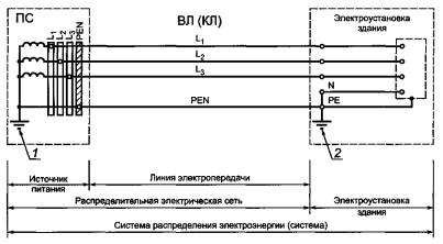 устройство электроустановки здания; ПС - трансформаторная подстанция; ВЛ -