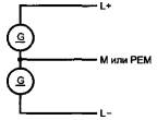 Рисунок 7 - Трехпроводная система Примечание - PEL- и РЕМ-проводники не являются токоведущими проводниками, несмотря на то, что они проводят рабочий ток. Поэтому используют названия «двухпроводная цепь» или «трехпроводная цепь». 312.2 Типы заземления системыВ настоящем стандарте рассматриваются следующие типы заземления систем переменного и постоянного тока. Примечание 1 - На рисунках 31А1-31G2 приведены примеры типов заземления для обычно используемых трехфазных систем переменного тока. На рисунках 31Н-31М приведены примеры типов заземления для обычно используемых систем постоянного тока. Примечание 2 - Пунктирными линиями обозначены части системы, которые не охвачены областью действия настоящего стандарта, в то время, как сплошными линиями обозначена часть, которая охвачена областью действия стандарта. Примечание 3 - В частных системах источник питания и (или) распределительную сеть допускается рассматривать в качестве части электроустановки, как это предусмотрено настоящим стандартом. В этом случае рисунки можно полностью показать сплошными линиями. Примечание 4 - Используемые на рисунках буквенные обозначения имеют следующий смысл: Первая буква устанавливает наличие или отсутствие заземления токоведущих частей источника питания: Т - непосредственное присоединение одной точки токоведущих частей источника питания к земле. Примечание - В распределительной сети, если она есть, может быть выполнено дополнительное заземление PEN-, РЕМ-, PEL-проводников и защитных проводников (РЕ); I - все токоведущие части источника питания изолированы от земли или одна из токоведущих частей заземлена через большое сопротивление. Примечание - Проводники распределительной электрической сети, если она есть, как правило, должны быть изолированы от земли. Вторая буква указывает на заземление открытых проводящих частей электроустановки или на наличие связи между открытыми проводящими частями и заземленной токоведущей частью источника питания: Т - открытые проводящие части заземлены независимо от наличия или отсутствия заземления какой-либо токоведущей части источника питания; N - открытые проводящие части имеют непосредственное соединение с заземленной токоведущей частью источника питания, выполненное с помощью PEN-, РЕМ-, PEL- или защитных проводников (РЕ). Следующие за N буквы определяют, как в системе распределения электроэнергии осуществляют электрическую связь между заземленной токоведущей частью источника питания и открытыми проводящими частями электроустановки: С - во всей системе распределения электроэнергии указанную связь обеспечивают с помощью PEN-, РЕМ- или PEL-проводников; S - во всей системе распределения электроэнергии указанную связь выполняют с помощью защитных проводников (РЕ); C-S - в головной части системы распределения электроэнергии (от источника питания) указанную связь осуществляют с помощью PEN-, РЕМ- или PEL-проводников, а в остальной части системы - с помощью защитных проводников (РЕ). Символы, используемые на рисунках 31А1-31М: