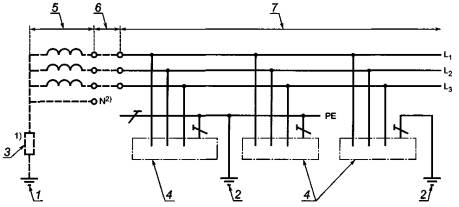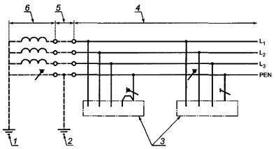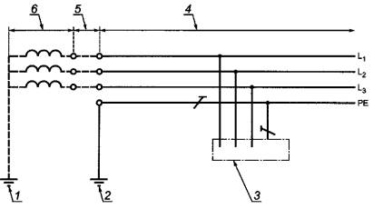 1 - заземляющее устройство источника питания; 2 - заземляющее