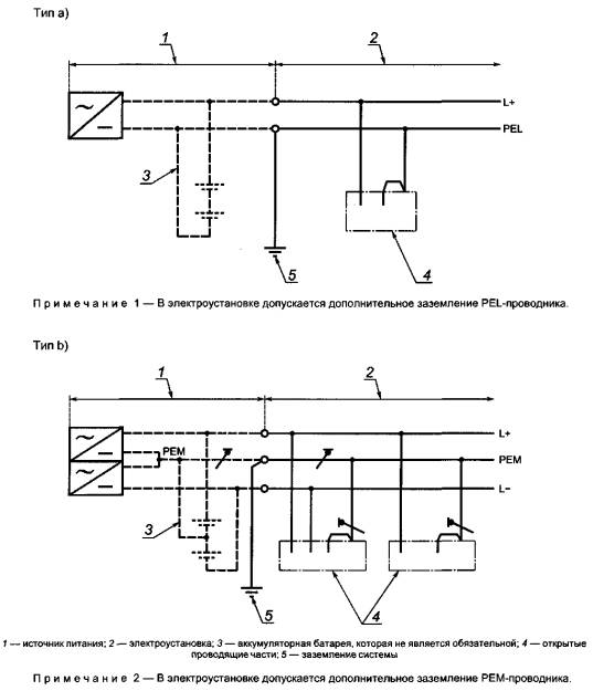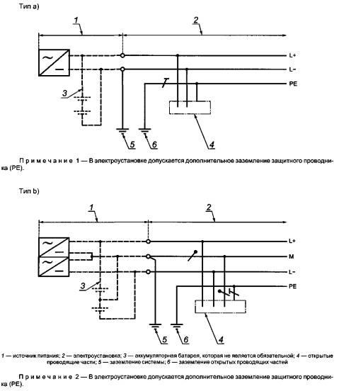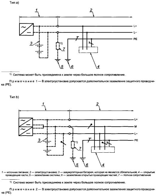 Рисунок 31L - Системы ТТ постоянного тока - двухпроводная а), трехпроводная b) 312.2.4.5 Система IT