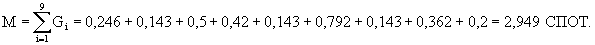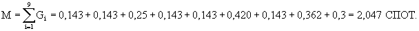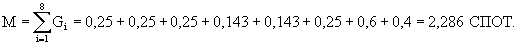 Приложение 4Пример расчета стоимости разработки рабочей документации на автоматизированную информационно-измерительную систему коммерческого учета электропотребления (АИИС КУЭ), осуществляемой с привлечением средств бюджета города Москвы1. Исходные данные* 1. Протекание процессов во времени в системе носит непрерывный характер. 2. Количество технологических операций автоматизированного контроля и управления равно 4 по количеству электросчетчиков. 3. Количество контролируемых физических сигналов равно 19. 4. Количество управляющих физических сигналов равно 2. 5. Количество внутримашинных переменных верхнего уровня равно 345. 6. В системе осуществляется централизованный контроль и измерение параметров состояния ТОУ. 7. Производится одноконтурное автоматическое управление 8. Режим функционирования - автоматизированный диалоговый. 9. Уровни новизны в проектных решениях по частям технической документации: - документация ТО - 2.0 %; - документация МО - 20 %; - документация ПО - 20 %. 10. Доля ИК, подлежащих государственным испытаниям - свыше 70 %. 11. Уровень надежности системы - обычный. *) Исходные данные для расчетов взяты из рабочей документации на АИИС КУЭ системы-аналога на РТС 2. Расчет базовой стоимости основных работ по разработке рабочей документации 2.1. Используя исходные данные, по таблице 1 определяем величины критериев Qi. 2.1.1. Величина критерия G1 в соответствии с п. 1.1 табл. 1 составляет 0,143 СПОТ. 2.1.2. Величина критерия G2 в соответствии с п. 2.1 табл. 1 составляет 0,143 СПОТ. 2.1.3. Величина критерия G3 в соответствии с п. 3.1 табл. 1 составляет 0,25 СПОТ. 2.1.4. Величина критерия G4 в соответствии с п. 4.1 табл. 1 составляет 0,143 СПОТ. 2.1.5. Величина критерия G5 в соответствии с п. 5.2 табл. 1 составляет 0,143 СПОТ. 2.1.6. Величина критерия G6 в соответствии с п. 6.2 табл. 1 составляет 0,420 СПОТ. 2.1.7. Величина критерия G7 в соответствии с п. 7.1 табл. 1 составляет 0,143 СПОТ. 2.1.8. Величина критерия G8 в соответствии с п. 8.3 табл. 1 составляет 0,362 СПОТ. 2.1.9. Величина критерия G9 определяется суммированием оценок в СПОТ в соответствии с уровнем новизны в проектных решениях для разделов ТО, МО и ПО технической документации: G9 = 2·0,05 + 2·0,05 + 2·0,05 = 0,3 СПОТ. Определяем «мощность» АИИС КУЭ, выраженную в СПОТ (п. 2.5 «Методики»):
