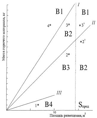 При превышении предельно допустимой площади размещения пожарной нагрузки категория помещения переходит из низшей В4 (B3, В2) в высшую В3 (В2, В1).