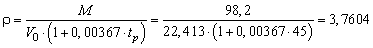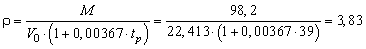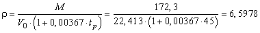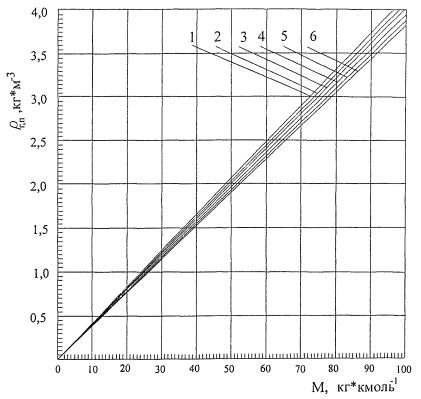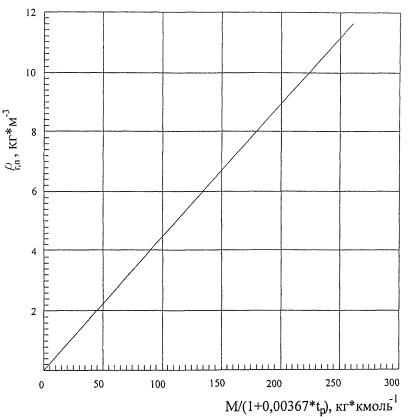3.7 Рассчитываем плотность паров r (кг·м-3) бензина по формуле (3.4.2) в зависимости от значений молекулярной массы M и расчетной температуры tp.