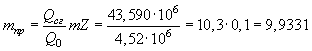 3.9 Определяем приведенную массу mпр (кг) горючих паров по формуле (6.4.2)