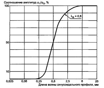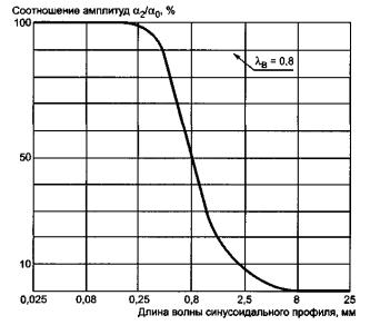 где a0 - амплитуда синусоидального профиля шероховатости перед фильтром; a1 - амплитуда профиля средней линии; lВ - длина волны отсечки шага фильтра; l - длина волны синусоидального профиля.