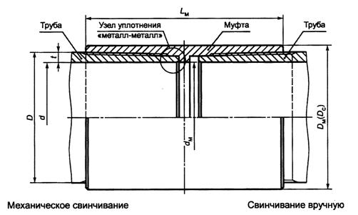 5.2 Основные параметры резьбового соединения ОТТМ5.2.1 Общий вид резьбового соединения ОТТМ при свинчивании вручную и при механическом свинчивании показан на рисунке 2.