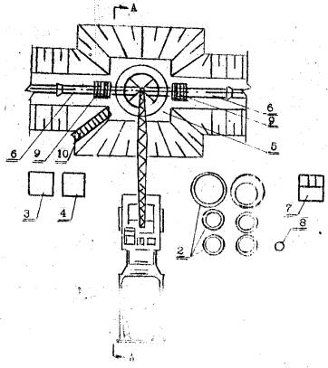 Трубоукладчик (4) производит рыхление грунта в основании колодца, перемешивание его с битумом и уплотнение с помощью ручкой трамбовки, а трубоукладчик (5) - разогрев битума, в передвижном котле, переноску и опускание его в закрытой таре в котлован и изоляцию внутренней поверхности железобетонных колец битумом.